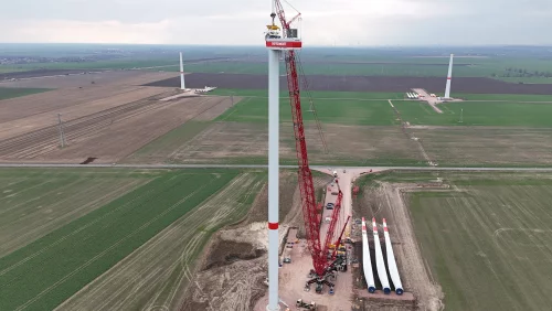 Auf der Baustelle des Windparks ging es mit großen Schritten voran. So konnten innerhalb des letzten Monats sowohl die 5. als auch 6. Anlage der insgesamt 8 Anlagen errichtet werden. Derzeit erfolgt der Anschluss dieser beiden Anlagen an das Netz.