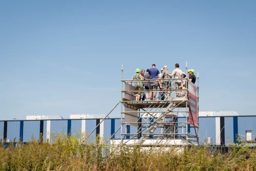 Am Samstag, den 21. Juni 2025, öffnete das Reallabor der Energiewende seine Tore für die Öffentlichkeit. Im Rahmen der bundesweiten Woche des Wasserstoffs lud das Projektteam interessierte Bürgerinnen und Bürger auf das Baustellengelände ein. Über die Besucherplattform erhielten alle Interessierten einen direkten Blick auf zentrale Anlagenteile wie das Elektrolyseur-Gebäude, den EBL-Windpark, das Umspannwerk und die Wasserstoffleitungen.