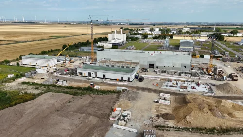 Auf der Baustelle des Elektrolyseurs wurde im August der Portalkran angeliefert und im Elektrolysegebäude montiert. Darüber hinaus wurde die Errichtung der Anbauten und Nebengebäude kräftig vorangetrieben. Unter anderem konnte an einem der beiden Anbauten die Montage der Wände abgeschlossen sowie die Dachbegrünung am Verwaltungsgebäude abgeschlossen werden.