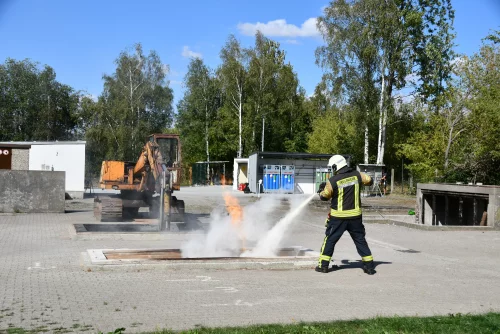 Die vielen praktischen Übungen waren das Highlight der Wasserstoffschulung. Dabei konnten die Feuerwehren verschiedene Einsatzszenarien simulieren und ihr Wissen direkt anwenden. Diese Übungen boten die Möglichkeit, theoretisch erlerntes Wissen in die Praxis umzusetzen und den sicheren Umgang mit Wasserstoff zu trainieren. Die Teilnehmenden konnten unter realistischen Bedingungen das Löschen von Wasserstoffflammen üben, wie sie im Ernstfall reagieren und welche Maßnahmen sie ergreifen müssen.