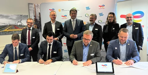 Am heutigen Montag, den 27.11.2023, konnte im Beisein von Sachen-Anhalts Wirtschaftsminister Sven Schulze der erste Liefervertrag für Grünen Wasserstoff in Deutschland zwischen dem Energiepark Bad Lauchstädt – vertreten durch Uniper und die VNG Handel & Vertrieb GmbH über das gemeinsame Joint-Venture Elektrolyse Mitteldeutschland GmbH – sowie der TotalEnergies Raffinerie Mitteldeutschland GmbH geschlossen werden. Nach einer Vorvereinbarung im Juni und parallel zu den seit Juli laufenden Bauarbeiten zur Errichtung der Elektrolyse haben die Vertragspartner in den zurückliegenden Wochen diesen Liefervertrag in all seinen Details ausgearbeitet und finalisiert.