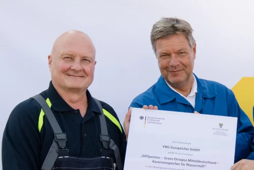 On 27 August 2024, the Federal Minister for Economic Affairs and Climate Protection, Robert Habeck, presented VNG Gasspeicher GmbH (VGS) with a positive IPCEI funding decision for the innovative GO! hydrogen storage project in Bad Lauchstädt. The project is part of the Hy2Infra wave of IPCEI Hydrogen (“Important Projects of Common European Interest”), which was approved by the EU Commission on 15 February 2024. The funding commitment marks a significant milestone in the expansion of the hydrogen economy in Germany.